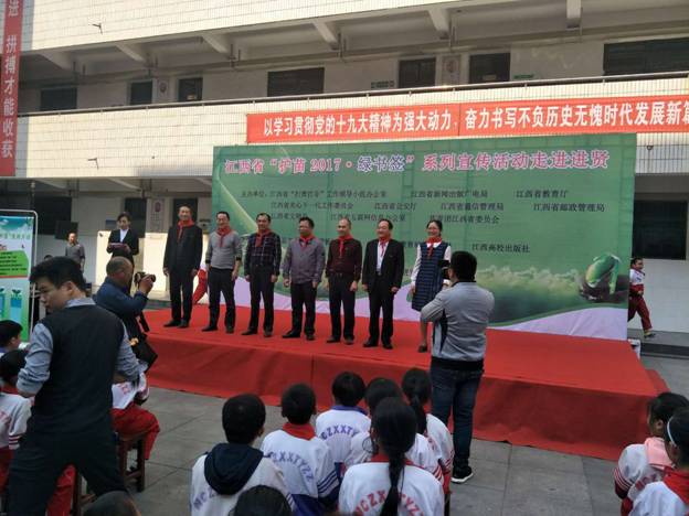 2017年11月9日下午,江西省“護(hù)苗2017·綠書簽”系列宣傳活動(dòng)走進(jìn)進(jìn)賢縣實(shí)驗(yàn)學(xué)校。本次活動(dòng)以“書香校園、正版圖書、綠色閱讀”為主題,特邀著名少兒作家雷莉女士蒞臨活動(dòng),并舉辦了專場(chǎng)文化知識(shí)講座。縣實(shí)驗(yàn)學(xué)校書記胡新華、縣文廣局主任科員樊偉平、縣教體局書記龔曉春、江西新華發(fā)行集團(tuán)進(jìn)賢縣分公司經(jīng)理曾忠、實(shí)驗(yàn)學(xué)校校長(zhǎng)唐衛(wèi)東參加了活動(dòng)。