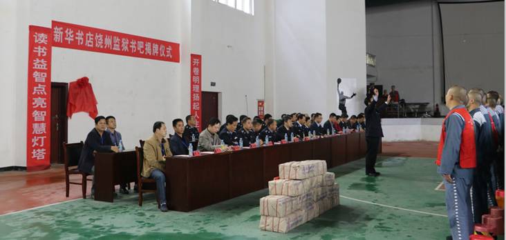 2017年11月8日,江西省首家監(jiān)獄內(nèi)書吧——“新華書店饒州監(jiān)獄書吧”在饒州監(jiān)獄舉行了開業(yè)啟動儀式。省監(jiān)獄管理局副局長劉林如、教育改造處處長饒振華,省新聞出版廣電局公共服務(wù)處處長陳建文,江西新華發(fā)行集團有限公司副總經(jīng)理龔晉,江西人民出版社社長張德意、社長助理黃心剛,江西新華發(fā)行集團有限公司上饒市分公司經(jīng)理劉濤、書記武榮標,鄱陽縣委宣傳部副部長胡春江,鄱陽縣文廣新局局長程肇,鄱陽縣珠湖地區(qū)檢察院檢察長劉向陽、副檢察長張傳志,上饒市中級人民法院專職委員劉虹,饒州監(jiān)獄政委劉光濤、副監(jiān)獄長程文明、副監(jiān)獄長林偉雄,珠湖公司總經(jīng)理劉興忠等出席了啟動儀式。