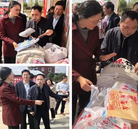 2018年10月17日扶貧日,江西新華發(fā)行集團(tuán)有限公司鄱陽縣分公司經(jīng)理張杰一行赴鄱陽縣雙港鎮(zhèn)余沈村村民委員會參加“脫貧攻堅暨關(guān)愛老人·歡度重陽”送知識、送健康、送文化三下鄉(xiāng)活動,上饒市副市長、無黨派知識分子聯(lián)誼會會長鄭少薇,上饒市統(tǒng)戰(zhàn)部副部長、無黨派知識分子聯(lián)誼會常務(wù)副會長周新興等領(lǐng)導(dǎo)蒞臨活動現(xiàn)場