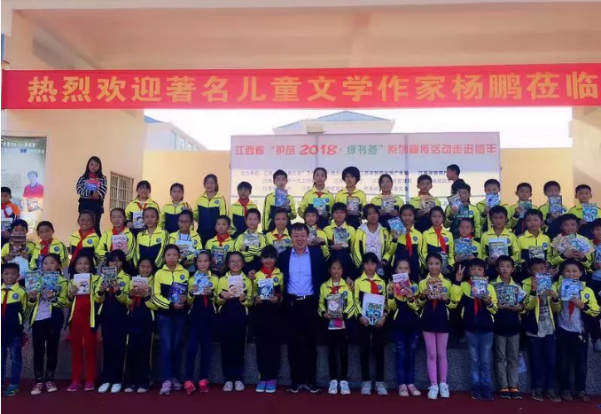 2018年11月5日,江西省“護(hù)苗2018·綠色書簽”系列宣傳活動(dòng)走進(jìn)信豐縣一小和工業(yè)園學(xué)校。本次活動(dòng)特邀著名兒童文學(xué)作家楊鵬為師生帶來(lái)了一場(chǎng)“閱讀改變?nèi)松,想象成就未?lái)”的主題講座,積極引導(dǎo)學(xué)生“好讀書、讀好書”,遠(yuǎn)離和抵制含淫穢色情、暴力、恐怖等內(nèi)容的有害出版物。